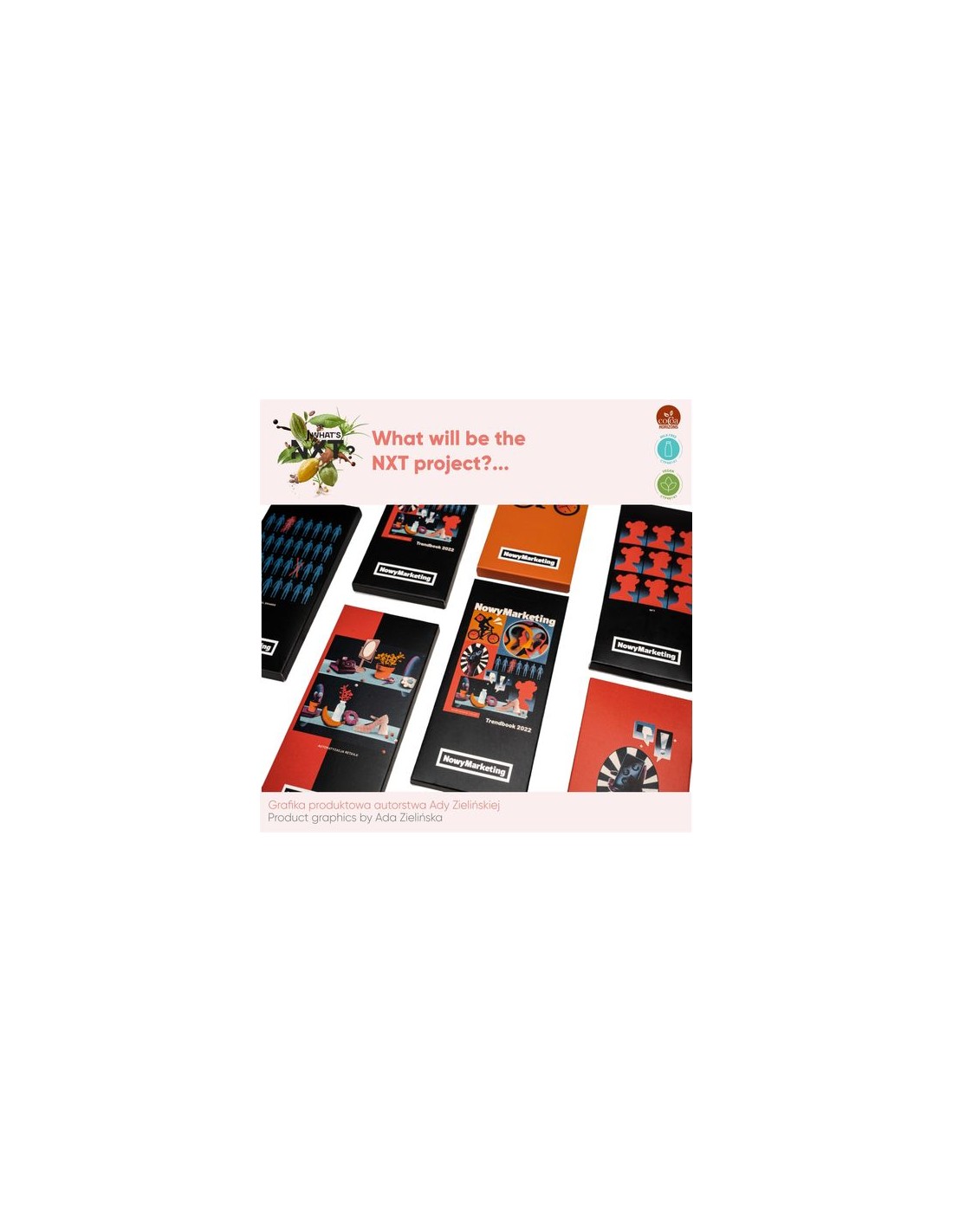 Una deliciosa tableta de chocolate en una sobria, no solo es un excelente Saboro 100% vegetal, sino también un gran espacio publicitario! Esto le ayudará a posicionar eficazmente su marca. El chocolate NXT Generation en versión natural o con 1 de las 3 capas a elegir (pistachos,Fresa, crujiente de almendras) es una propuesta deliciosa, destinada no solo a los veganos. Lo hemos embalado en película de aluminio compostable y una Lata de cartón en papel certificado FSC, que hemos diseñado Poro maximizar el espacio publicitario Poro l'impresión. ¡Gracias al uso de la impresión digital es posible imprimir prácticamente los elementos gráficos o fotos! contenido: tableta de chocolate 70 g.Saboro: chocolate con leche - vegano, a base de plantas sin trazas de leche. Opciones de producto: diferentes Tipos de Coberturas a elegir, opcionalmente la posibilidad de añadir la cobertura, papel blanco o kraft. Inforomación adicional: Envasado 100% biodegradable con película 100% compostable, papel blanco de serie, papel kraft Elección opcional. Dimensiones: 170 x 75 x 10 mm.Cantidad Mínimo: 100 ejemplares. Fecha de Caducidad mínima: 8 meses.