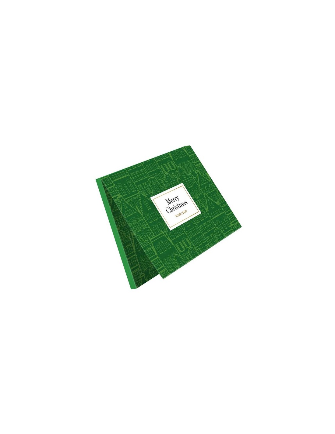 contenido : 24 chocolates (50 g en total)Saboro : chocolate con lecheOpciones de producto : impresión recto-verso, papel blanco, papel kraft o papel crudo con ajot de fibras de hierbaInforomación adicional : moldeado en R-PET (PET reciclado), papel blanco de serie, papel kraft o papel crudo con ajot de fibras de hierba elección opcionalDimensiones : 200 x 142 x 10 mmCantidad Mínimo : 100 exFecha de caducidad mínima : 8 mesesTipo de impresión : digital.