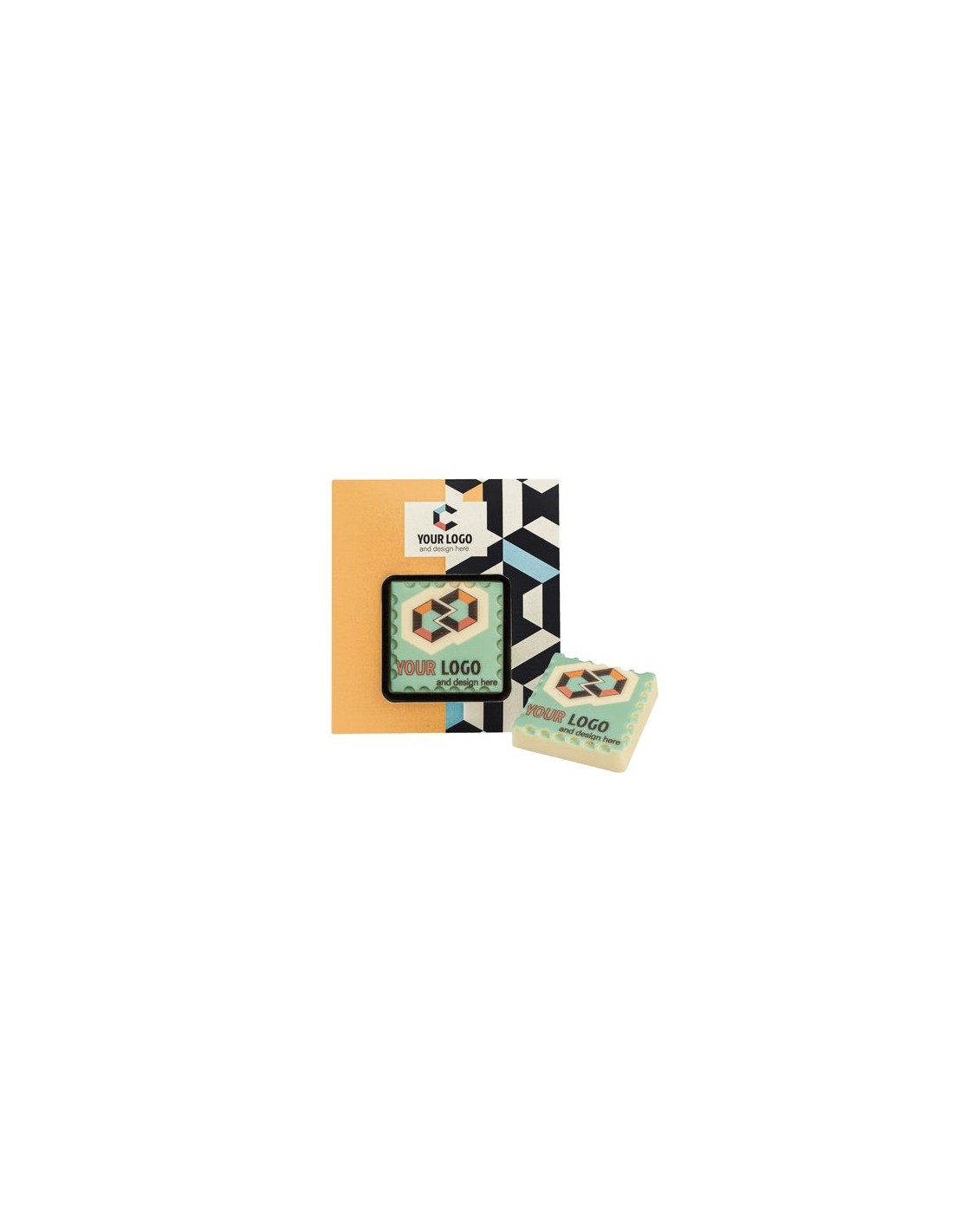 El chocolate Choco Stamp no sólo conquistará su corazón y su paladar, sino que también impulsará sus comunicaciones de markying. !Le chocolate blanco en forma de sello clásico con elementos gráficos directamente sobre el chocolate está compuesto por un 30% de manteca de cacao, elaborado con una recya más que centenaria e ingredientes procedentes de soroces sostenibles, lo que está garantizado por el certificado Cacao Horoizons..Un diseño original sin pagar el coste del topo y gráficos directamente sobre el chocolate garantizan que este producto destaque entre otros gadgys publicitarios..Además, también podemos personalizar totalmente el envasado, sin límite de colores ni gradaciones..Consejo profesional : ¿Le gustaría tener el producto más fresco posible? ¡Elija nuestra confitería! Fabricamos e imprimimos el chocolate sólo después de recibir su pedido.contenido : chocolate con personalización 30 g.Saboro : chocolate blanco 36% manteca de cacao.Opciones de producto : papel blanco o kraft.Inforomación adicional : en option chocolate a deux coches blanco y con leche (a pedido individual), moldeado en R-PET (PET reciclado), papel blanco de serie, papel kraft elección opcional, posibilidad de personalizar el envase y el chocolate (elemento gráfico en el chocolate).Dimensiones : 95 x 106 x 15 mm.Cantidad Mínimo : 200 piezas.Fecha de caducidad mínima : 8 meses.