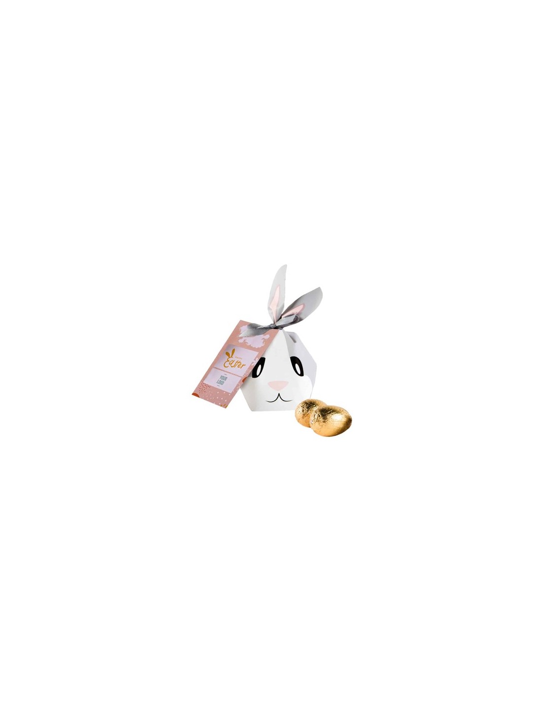 Contenido : 5 huevos de chocolate en papel de aluminio (total 50 g).Saboro : chocolate con leche.Opciones de producto : etiqueta blanca o kraft.Inforomación adicional : etiqueta en papel blanco de serie, papel kraft elección opcional, impresión recto-verso, bolsa monolámina 100% reciclable.Dimensiones :70 x 60 x 150 mm.Cantidad Mínimo : 100 ejemplares.Fecha de caducidad mínima : 6 meses.