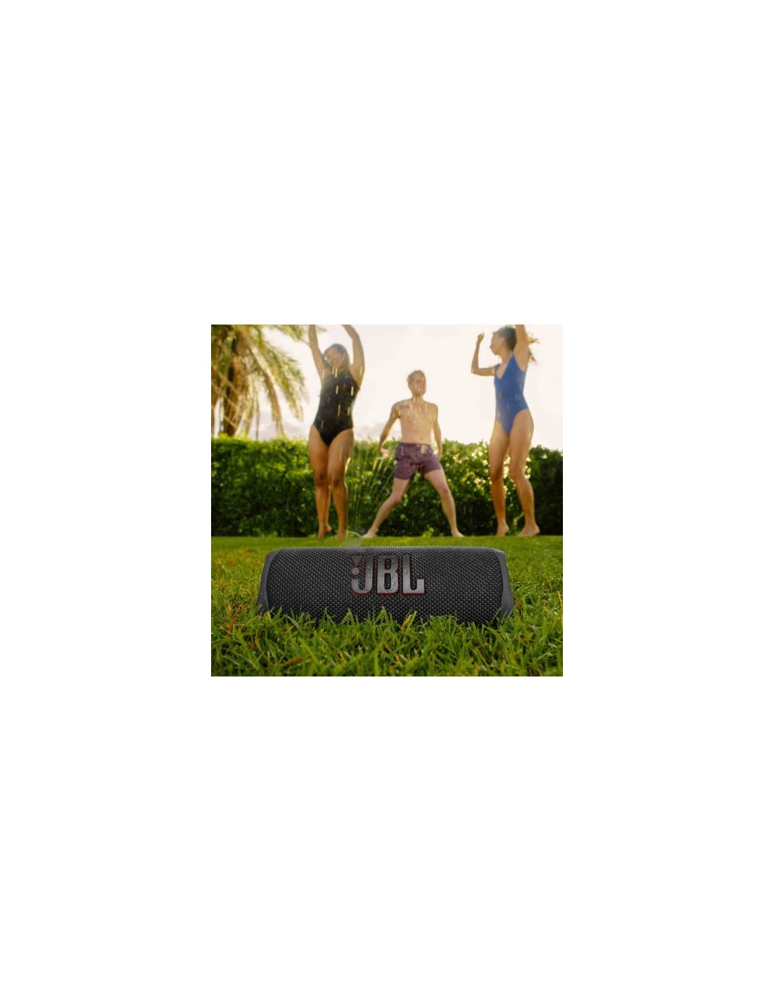 El ritmo no para con el sistema de altavoces de 2 vías del JBL Flip 6, diseñado para ofrecer un sonido nítido y potente. El altavoz de bajos con forma de circuito de carreras ofrece frecuencias bajas y gamas medias excepcionales, mientras que un altavoz de agudos independiente produce frecuencias altas nítidas y claras. El Flip 6 también cuenta con radiadores pasivos duales optimizados para graves profundos. Y gracias a su certificación IP67 es resistente al agua y al polvo. Además es ligero, para poder llevarlo a cualquier parte. ¿En la carrretera durante mucho tiempo? no hay problema gracias a su batería de hasta 12 horas de duración con una única carga. El JBL FLip 6 se personaliza con una impresión a todo color y una faja. Está disponible en 6 colores, así que seguro encuentras el que te encaje. Para pedidos de productos personalizados JBL, JBL debe aprobar la personalización (a través de DEONET) y firmar un contrato de venta con Harman. Solamente podemos aceptar pedidos de productos JBL sin marcar si el comprador tiene a su vez un contrato como HVP (Harman Value Partner). El distribuidor no puede hacer uso de la marca JBL/Harman. Batería(s) incluida(s) : Sí Color : Negro Personalización incluida: Sleeve for JBL Flip 6.