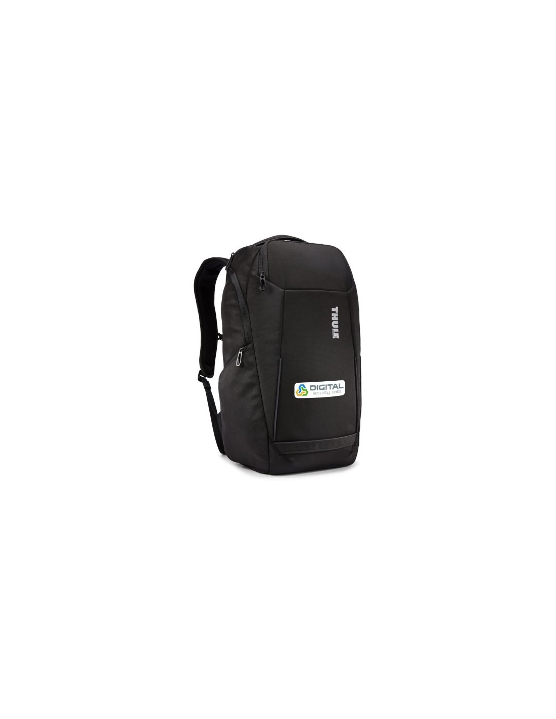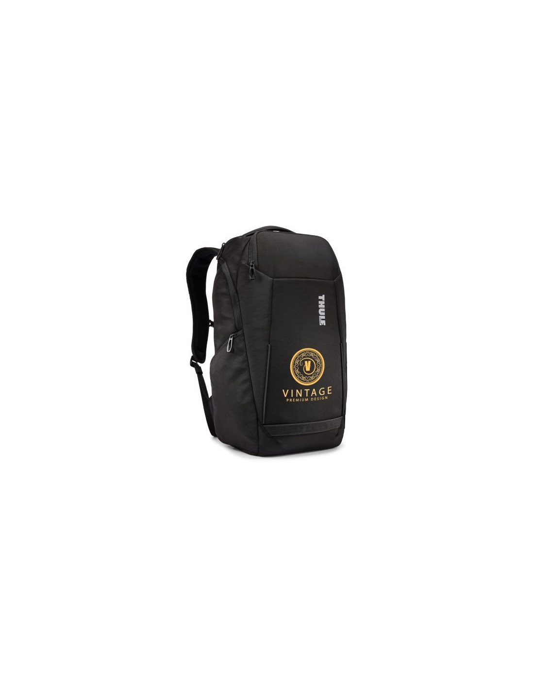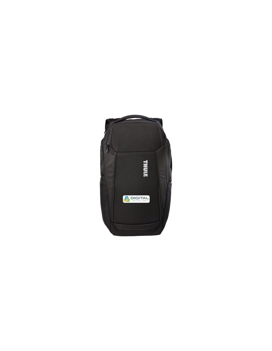 Ecológica y con una capacidad de 28 litros, la mochila Thule Accent protegerá todos tus aparatos electrónicos y accesorios en tus trayestos diarios. Su cinta posterior es perfecta para que lo lleves junto con tu troller si vas de viaje. La mochila Thule Accent es ideal para transportar una tableta, un portatil, documentos y cualquier otro accesorio que necesites. Su compartimento SafeZone con un bolsillo escondido detrás de un plástico rígido protegerá perfectamente tu teléfono movil, gafas o cualqueir otro elemento de valor. El bolsillo frontal te permitirá un fácil acceso a tus pequeñas cosas.Y por supuesto, sus bolsillos laterales te ofrecen espacio para tus bebidas. La mochila Thule Accent se personaliza a todo color con impresión térmica. Garantía : 2 años Color : Negro.