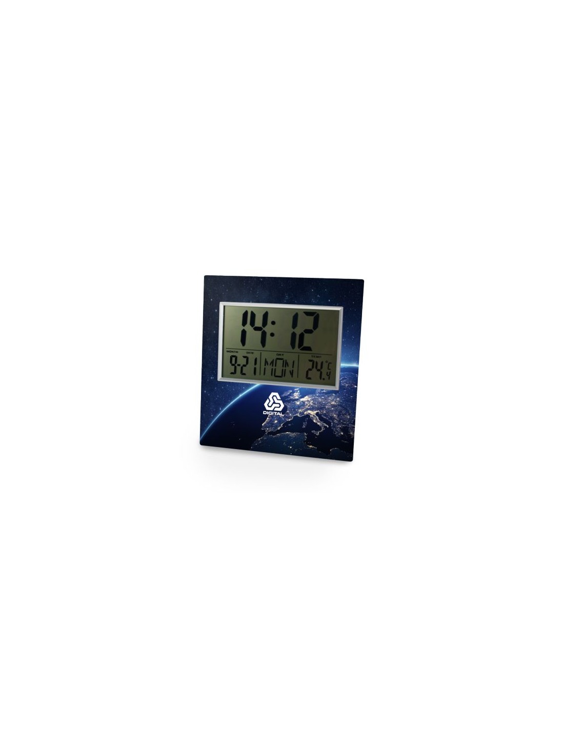 El Reloj Digital Horae es una excelente manera de promocionar tu empresa, ya sea en un escritorio o en una pared. Este reloj digital muestra la hora, fecha, temperatura y tiene una opción para configurar una alarma. Está pensado para poner sobre un escritorio o contra la pared y se personaliza con una impresión a todo color. Batería(s) incluida(s) : No.