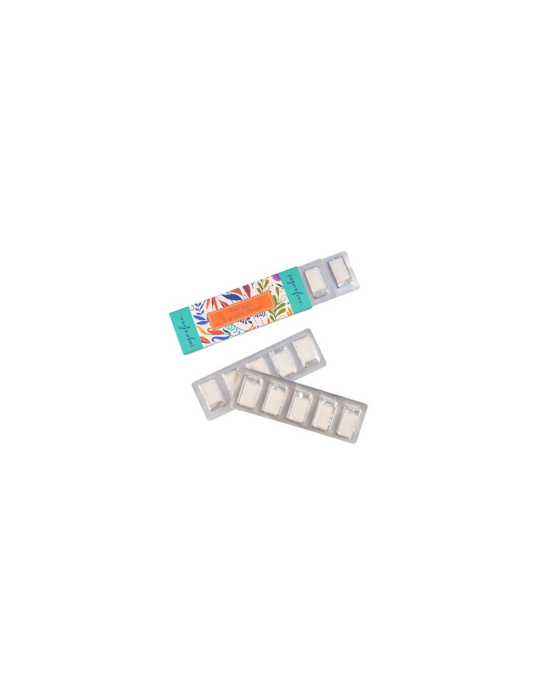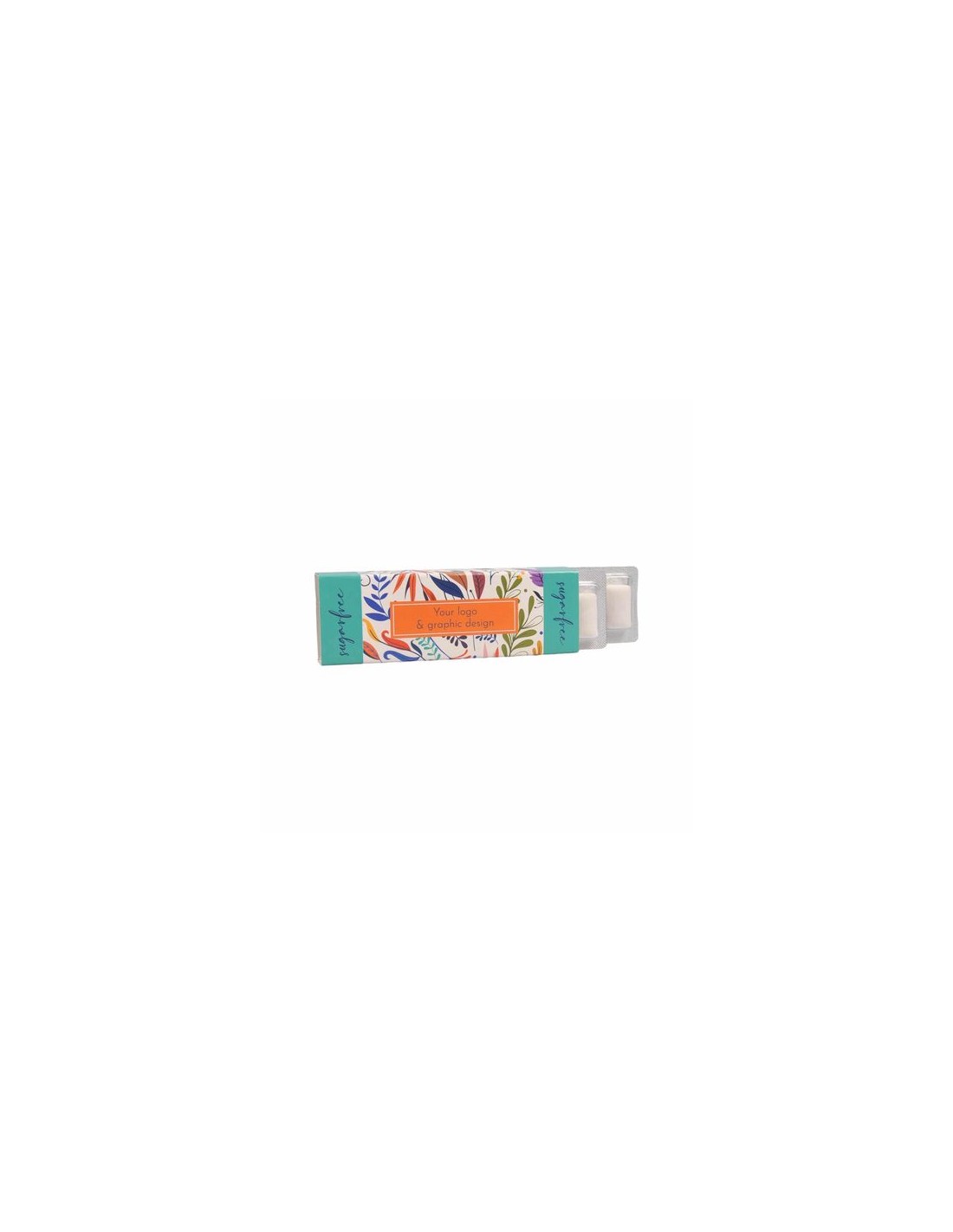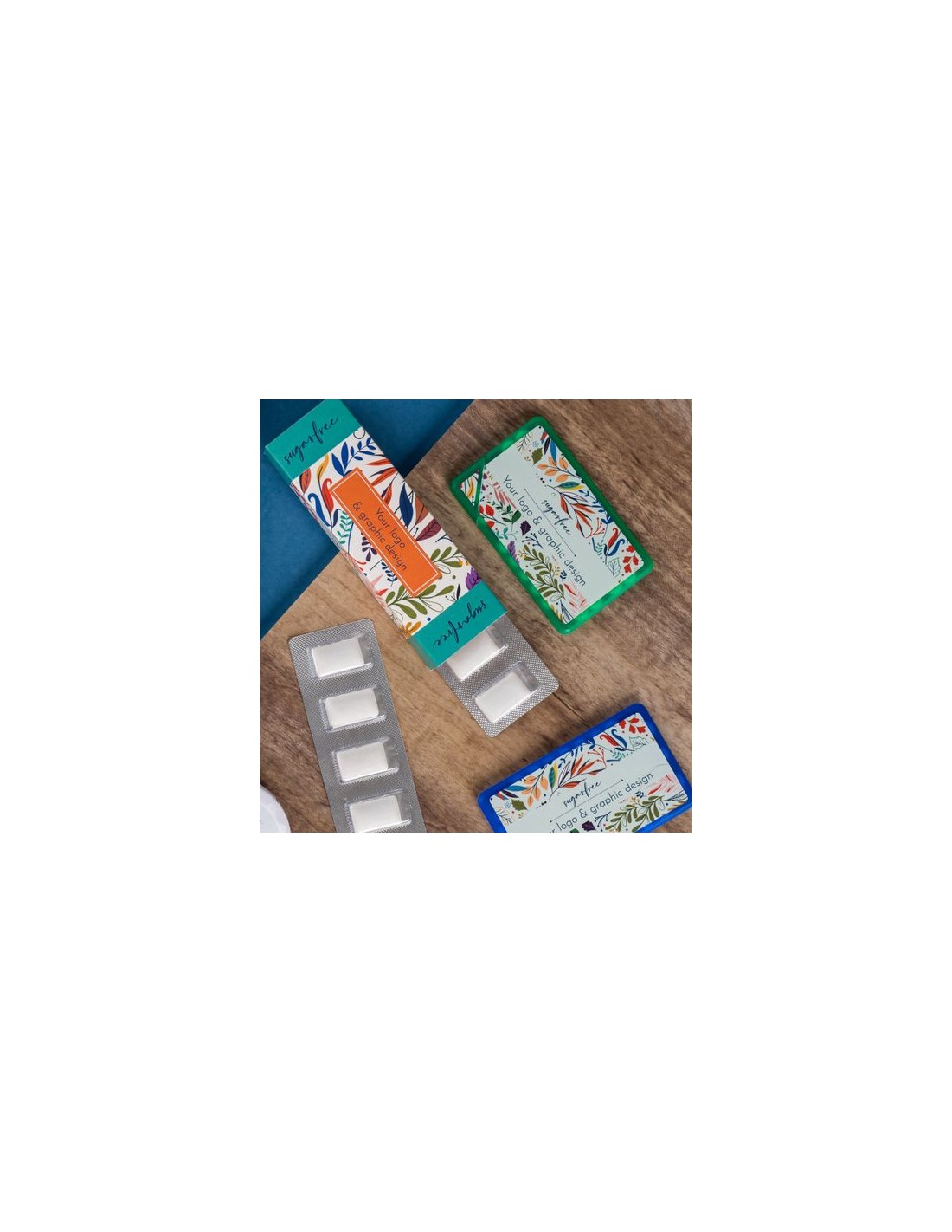 contenido : chewing-gum sin azúcar 10 piezas.Saboro : menta.Opciones de producto : papel blanco, papel kraft o papel crudo con ajot de fibras de hierba, possibilité d'imprimer sur un film au dos du blister.Inforomación adicional : papel blanco de serie, papel kraft o papel crudo con ajot de fibras de hierba elección opcional.Dimensiones : 110 x 35 x 17 mm.Cantidad Mínimo : 1000 piezas.Fecha de caducidad mínima : 12 meses.