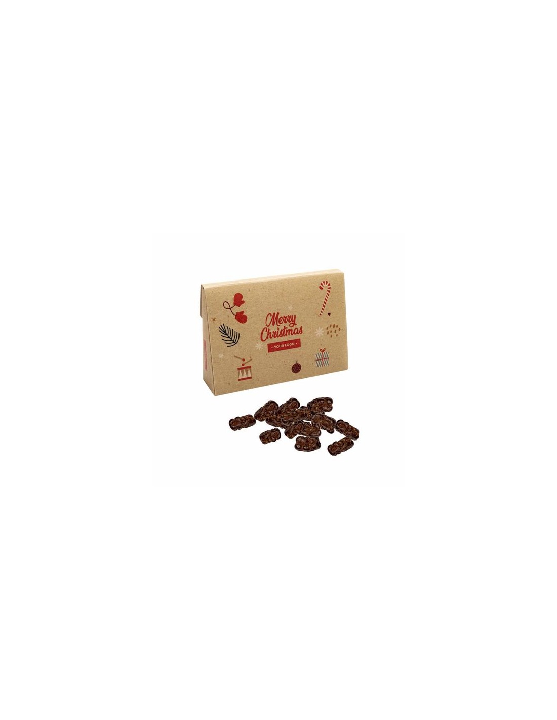 contenido : DULCES a elegir : grosella de chocolate blanco 60 g o cáscara de naranja de chocolate negro a l'Earl Grey 60 g o almendras de chocolatee con leche a la cannelle 60 gOpciones de producto : papel blanco, papel kraft o papel crudo con ajot de fibras de hierbaInforomación adicional : Envasado 100% biodegradable con film 100% compostable, papel blanco de serie, papel kraft o papel crudo con ajot de fibras de hierba elección opcionalDimensiones : 140 x 40 x 100 mmCantidad Mínimo : 200 piezasFecha de caducidad mínima : 6 mesesTipo de impresión : digital.