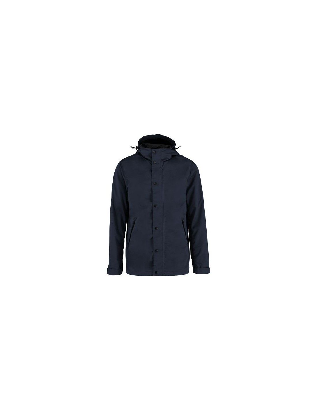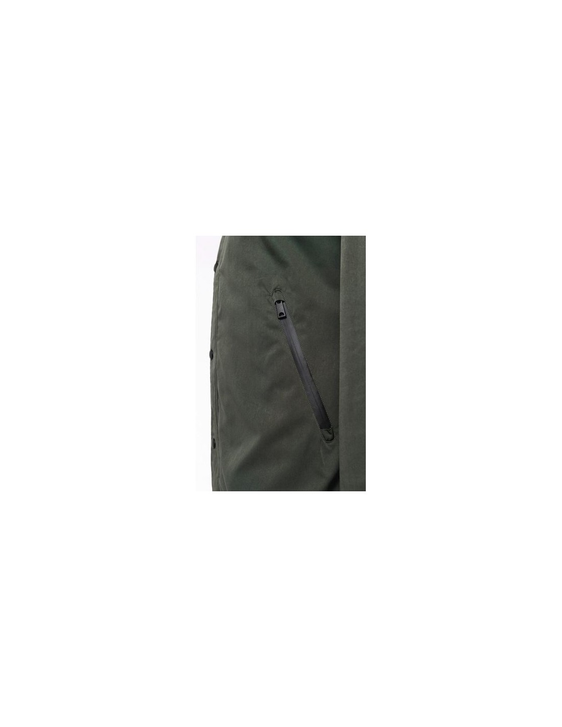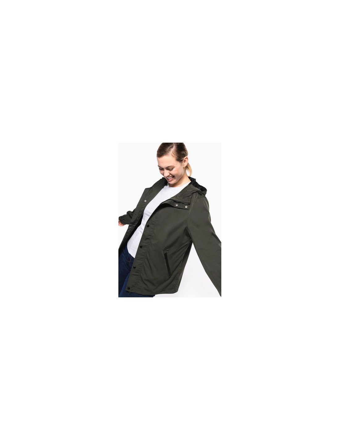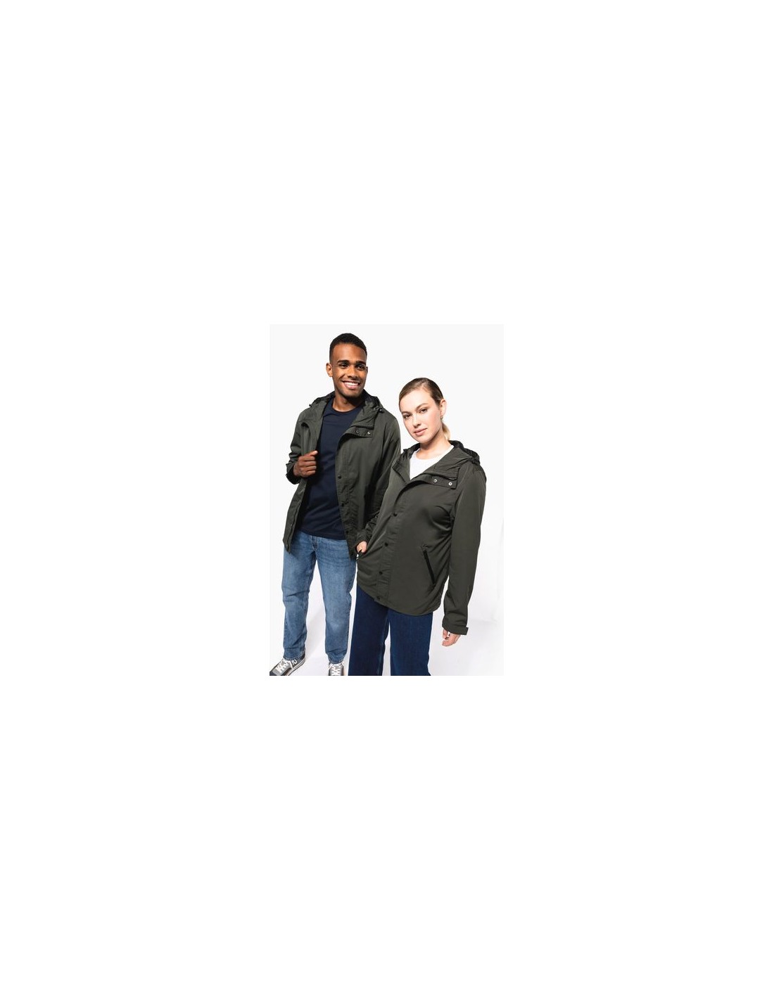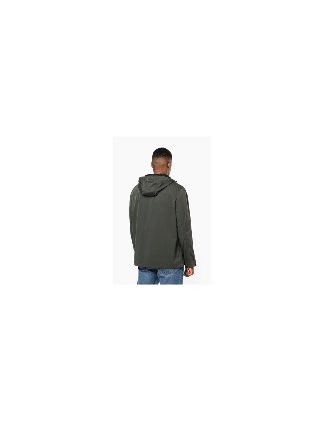 Fabricado con tejido hidrófugo, Bolsillos laterales con cremallera invertida (impermeable). 87 % poliéster (32 % reciclado) / 13 % poliamida. Botones a presión de pintura electrostática y metal. Tejido hidrófugo. Cremallera de plástico y tirador metálico. Bolsillos laterales con cremalleras vueltas (waterproof). Capucha con paneles forrada en poliamida Ripstop con rejilla. Cierre de velcro en el bajo de las mangas + semielástico. Forro interior de Ripstop extraíble para facilitar la personalización. Acabado en bies en las sisas, los lados de la prenda y el interior de las mangas. Ojales de ventilación en la espalda y en el bajo las mangas. Parte inferior de la prenda elástica, cordón de ajuste con tope en los laterales. Plaqueta de botones con botones de presión en la parte delantera central. Certificaciones : Recycled content standard
