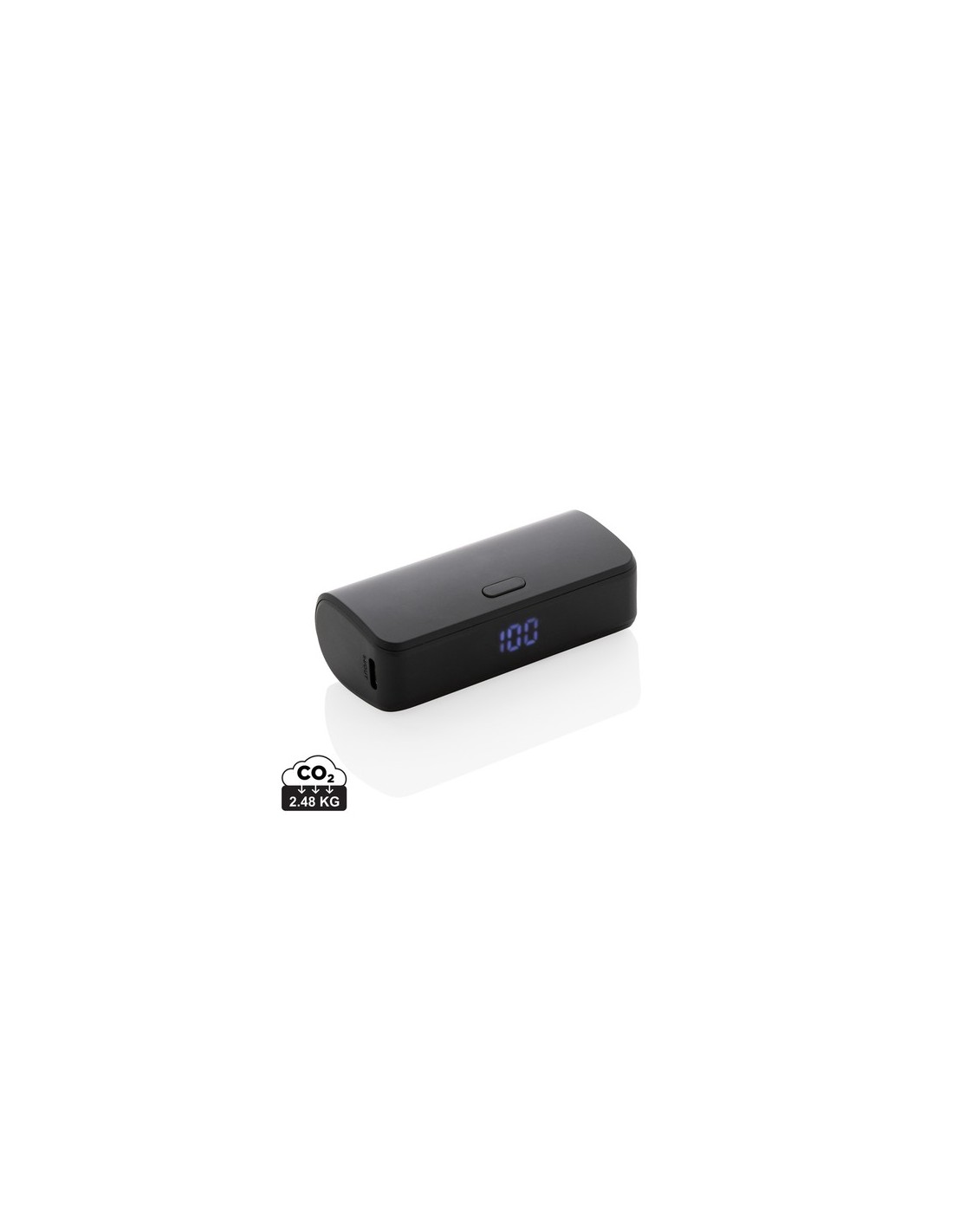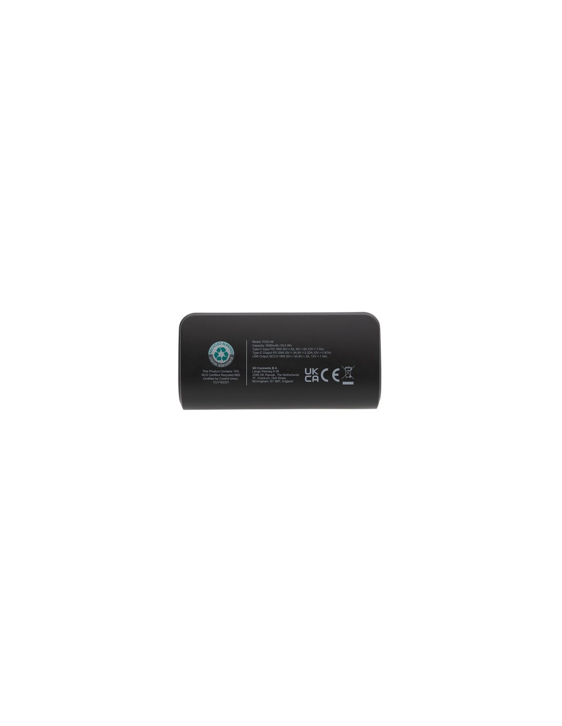 Powerbank PD de bolsillo de 5.000 mAh y 20W cuyo estuche está fabricado con plástico ABS reciclado certificado RCS. RCS (Recycled Claim Standard) es un estándar para verificar el contenido reciclado de un producto a lo largo de toda la cadena de suministro. Contenido total reciclado: 21% basado en el peso total del artículo. Con su diseño elegante y que ahorra espacio, Flashcharge es notablemente compacto, lo que garantiza que puedas llevarlo sin esfuerzo a donde quiera que vayas. Experimenta una carga ultrarrápida para dispositivos iOS y Android. Este powerbank garantiza que tus dispositivos alcancen la máxima potencia en un tiempo récord. El powerbank admite una recarga rápida de 18W, por lo que puede recargarse más rápido que un powerbank normal. Equipado con un puerto USB-A Quick Charge 3.0 y un puerto PD tipo C de 20W, puede cargar varios dispositivos simultáneamente, sin comprometer la velocidad de carga. Pantalla LED. Material : ABS reciclado Recycled Content Percent : 21 Conforme directiva bateria 2006/66EC, Conforme directiva Electromagnética 2014/30/EU, Conforme directiva de sustancias peligrosas 2011/65/EC & 2015/863, Hoja de datos de seguridad del material disponible, Conforme PAHS content in Reach & ZEK 01-4-08, Conforme directiva Phtalate content, Conforme directiva Battery transportation safety UN38.3, Certificado para transporte aéreo, Conforme directiva seguridad baterias Alcalinas EN62133, Libre de parafinas cloradas de cadena corta y media., Conforme directiva EN60950-1 a la protección contra descargas eléctricas y peligros de energía, certificado de Recycled Claim Standard WEEE Battery : 1 Li-ion - NL-84021 - 67,2 g. Packaging : Caja de regalo All print codes : Pad Print - Print code default : Tampografía - parte frontal del artículo - 60 x 15 mm - max color : 5 Social Audits : BSCI Total CO2 emissions : 2,48.