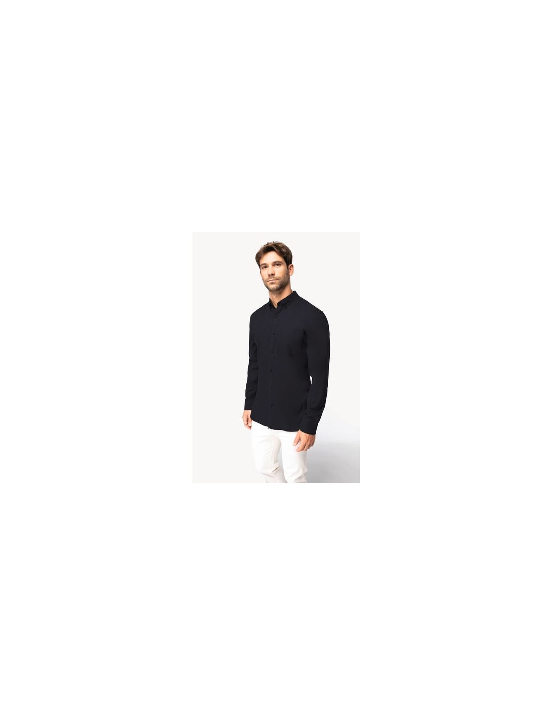 Lyocell: una fibra vegetal duradera y resistente. Tejido transpirable y resistente. No label: 100% personalizable según las necesidades de tu proyecto. 60 % Lyocell TENCEL™*/ 40 % algodón orgánico. *TENCEL™ es una marca de Lenzing AG. Corte ajustado. Producto lavado con enzimas. Botones de plástico reciclado a tono. Punta de cuello con botones. Bolsillo en el lado izquierdo del pecho. Puños botones. Dos pliegues de holgura en la espalda con canesú. Acabados laterales triangulares. Prenda lavada tras el montaje: los colores pueden variar ligeramente. Esta prenda puede desteñir al entrar en contacto con tejidos claros. Certificaciones : OCS Blended / Algodón orgánico EVE Vegan