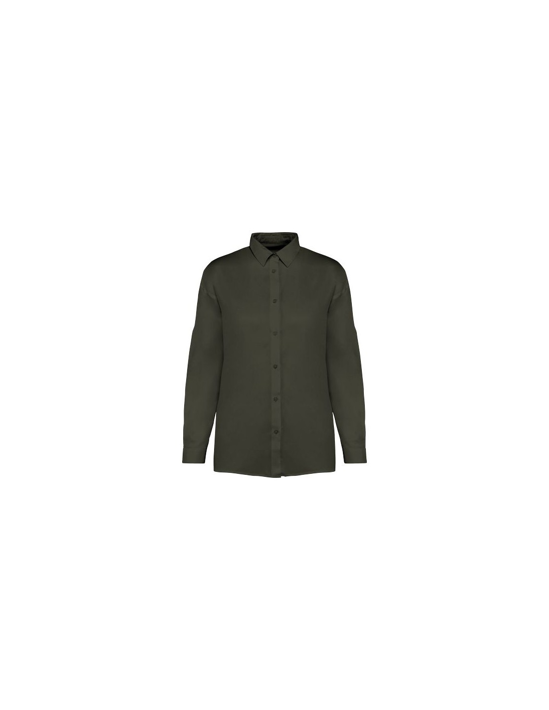 Fabricada con una mezcla de materiales responsables. Tejido transpirable y resistente. No label: 100% personalizable según las necesidades de tu proyecto. 60 % Lyocell TENCEL™*/ 40 % algodón orgánico. * TENCEL™ es una marca de Lenzing AG. Corte holgado ligeramente ancho. Producto lavado con enzimas. Botones de plástico reciclado a tono. Manga larga con dos pliegues. Canesú en la espalda. Dos pliegues de holgura en la espalda. Puños abotonados con aberturas laterales. Prenda lavada tras el montaje : los colores pueden variar ligeramente. Esta prenda puede desteñir al entrar en contacto con tejidos claros. Certificaciones : OCS Blended / Algodón orgánico EVE Vegan