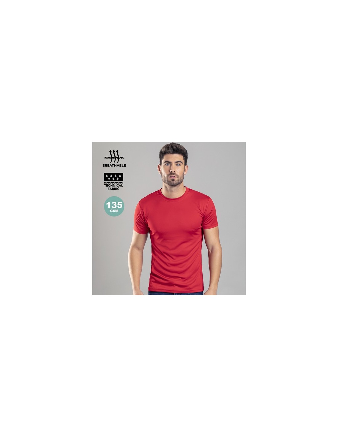 Camiseta técnica para adulto en material transpirable poliéster/elastano de 135g/m2. Disponible en variada gama de colores y en tallas S, M, L, XL, XXL. Color blanco especialmente fabricado para marcaje en sublimación. Transpirable Composition : Poliéster/ Elastano 135 g/ m2.