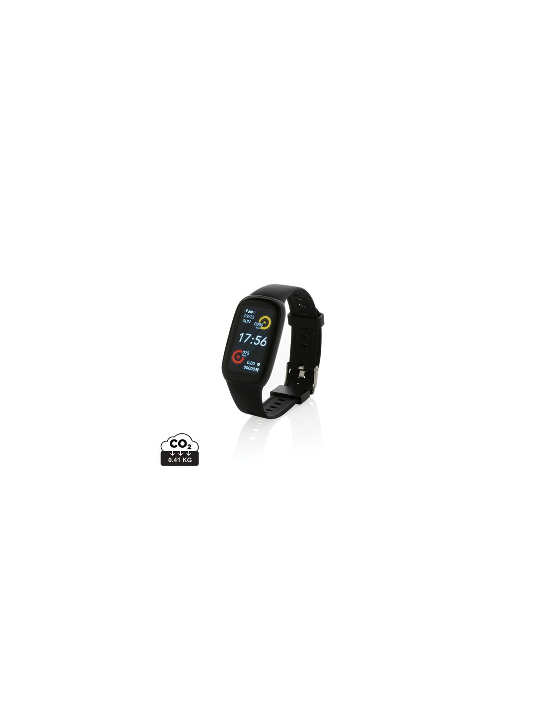 Resistente al agua (IP67) con una cómoda pulsera de TPU reciclado para usarla tanto de día como de noche. Con una gran pantalla táctil a color OLED de 1,47” fácil de usar. Fabricado con brazalete de TPU reciclado certificado RCS (Recycled Claim Standard) y estructura de ABS. Contenido reciclado total: 28% basado en el peso total del artículo. La certificación RCS garantiza una cadena de suministro completamente certificada de los materiales reciclados. Incluye aplicación gratuita. BT5.0. Funciones: recordatorio de mensaje, despertador inteligente, reloj, conteo de pasos, distancia, calorías, frecuencia cardíaca y monitoreo de presión arterial, monitoreo de oxígeno en sangre, modo multideportivo (11), caminar, modo carrera, modo conducción, modo sentado, etc. Control de música, notificaciones de mensajes, modo suspensión, llamada entrante,cronómetro. Tiempo de espera 20 días y tiempo de trabajo hasta 10 días. En embalaje kraft mixto FSC®. Artículo y accesorios 100% libres de PVC. Material : TPE reciclado, ABS Recycled Content Percent : 28 Conforme directiva equipamientos Radio y Telecomunicaciones 2014/53/EU, Conforme directiva de sustancias peligrosas 2011/65/EC & 2015/863, Hoja de datos de seguridad del material disponible, Conforme PAHS content in Reach & ZEK 01-4-08, Conforme directiva Phtalate content, Conforme directiva Battery transportation safety UN38.3, Certificado para transporte aéreo, Conforme directiva test libre níkel BS EN 1811:2012 y A:2015, Libre de parafinas cloradas de cadena corta y media., certificado de Recycled Claim Standard WEEE Battery : 1 Li-poli - CR2032 - 2,8 g. Packaging : Caja de regalo All print codes : Laser Engraving 2,Pad Print - Print code default : Grabado a láser - clip - 15 x 5 mm - max color : 1 Social Audits : BSCI Total CO2 emissions : 0,41.