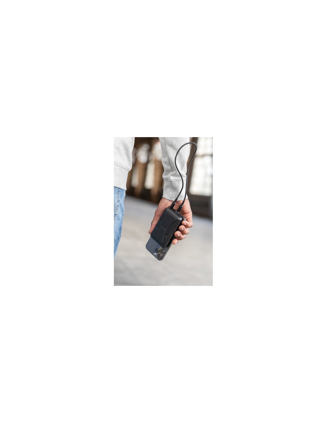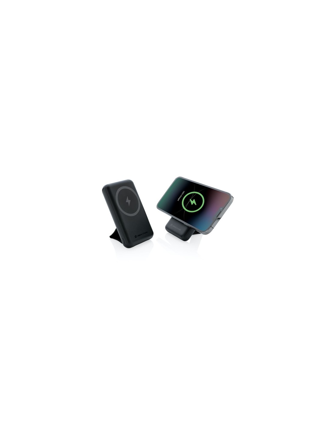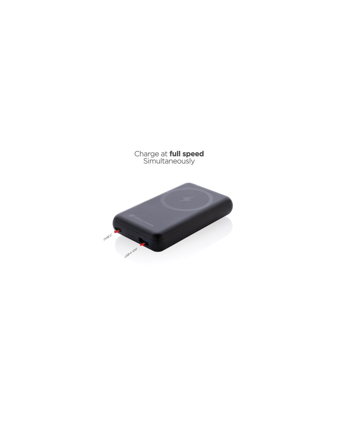 Cargua tu teléfono hasta 2,5 veces con este powerbank de carga rápida. Delgado y compacto tiene un cargador magnético inalámbrico rápido integrado de 10W. Cuenta con un versátil pie de apoyo plegable que mantiene tu teléfono en posición vertical. Gracias al puerto PD tipo C ultrarrápido, el powerbank se recarga en un tiempo récord. Carga tu teléfono hasta el 50% en solo 30 minutos. Contiene una batería de 10.000 mah de grado A de larga duración para cargar todos tus dispositivos. El puerto de doble salida A y tipo C te permite cargar hasta 2 dispositivos al mismo tiempo. Fabricado con ABS reciclado certificado RCS (Recycled Claim Standard) Contenido total reciclado: 16% basado en el peso total del artículo. La certificación RCS garantiza una cadena de suministro completamente certificada de los materiales reciclados. Los artículos Urban Vitamin se fabrican sin PVC y se presentan en envases reducidos de plástico. USB: 5V 3.0A Tipo C: 5V 3.0A, 9V 2.22A, 12V 1.5A. Material : ABS reciclado Recycled Content Percent : 16 Conforme directiva equipamientos Radio y Telecomunicaciones 2014/53/EU, Conforme directiva de sustancias peligrosas 2011/65/EC & 2015/863, Hoja de datos de seguridad del material disponible, Conforme PAHS content in Reach & ZEK 01-4-08, Conforme directiva Phtalate content, No usados materiales PVC, Conforme directiva Battery transportation safety UN38.3, Certificado para transporte aéreo, Libre de parafinas cloradas de cadena corta y media. WEEE Battery : 1 Li-poli - 128 g. Packaging : Caja de regalo All print codes : Pad Print - Print code default : Tampografía - parte frontal del artículo - 45 x 25 mm - max color : 5 Social Audits : BSCI Total CO2 emissions : 5,14.
