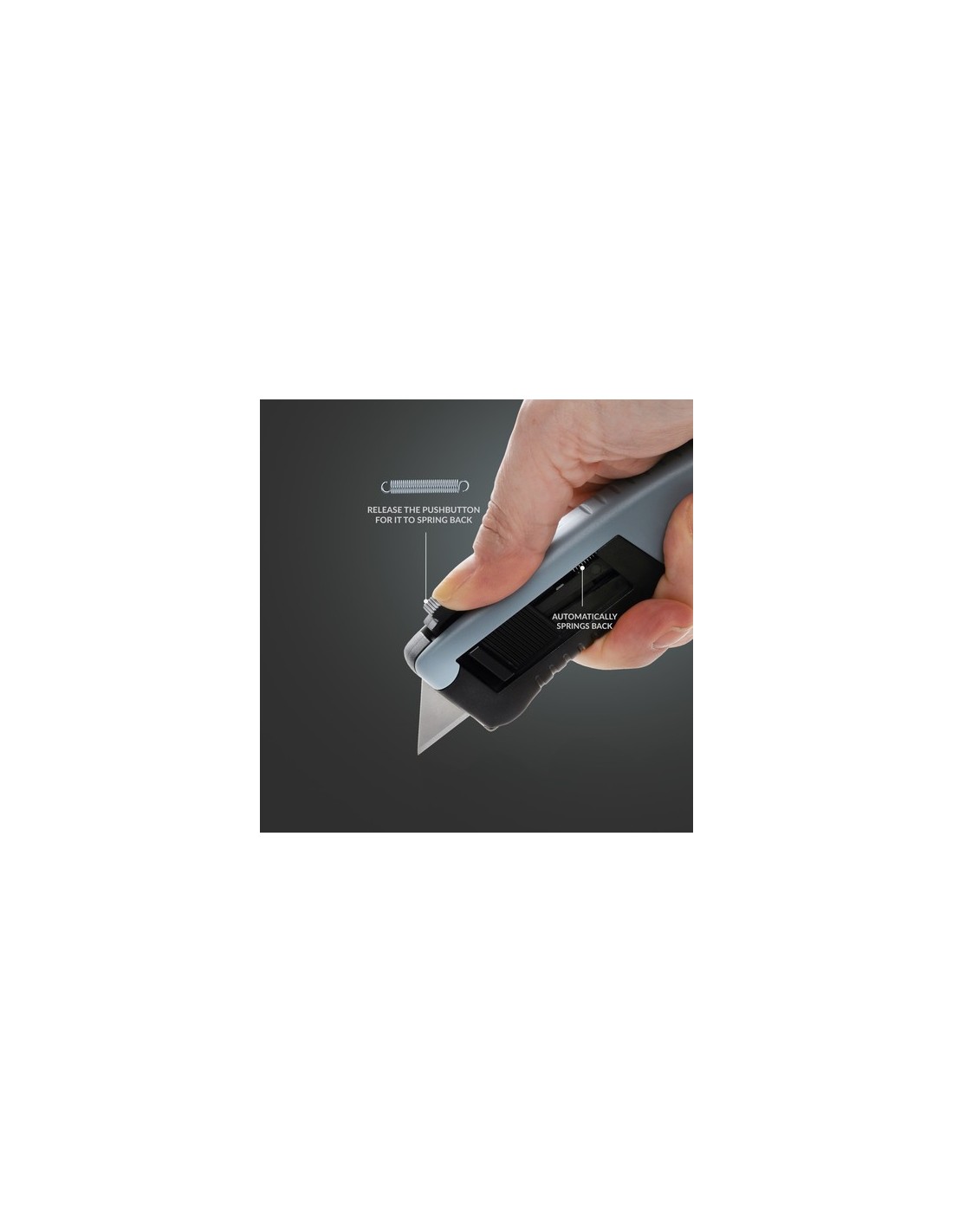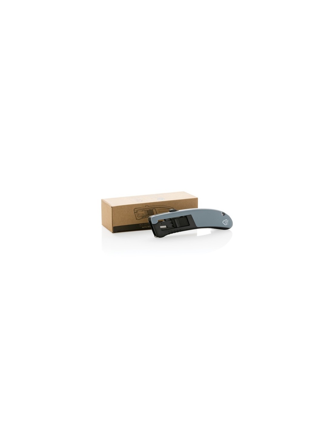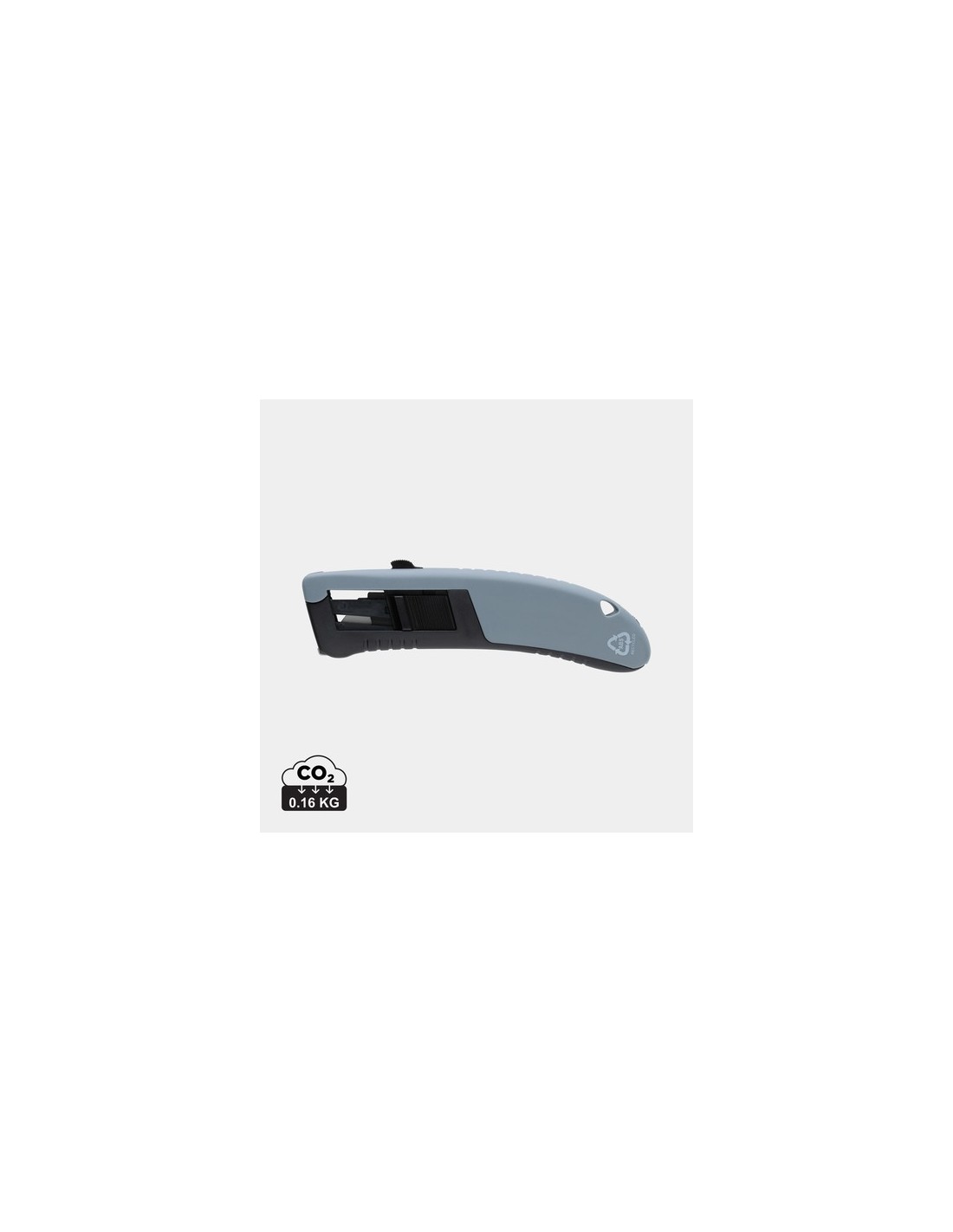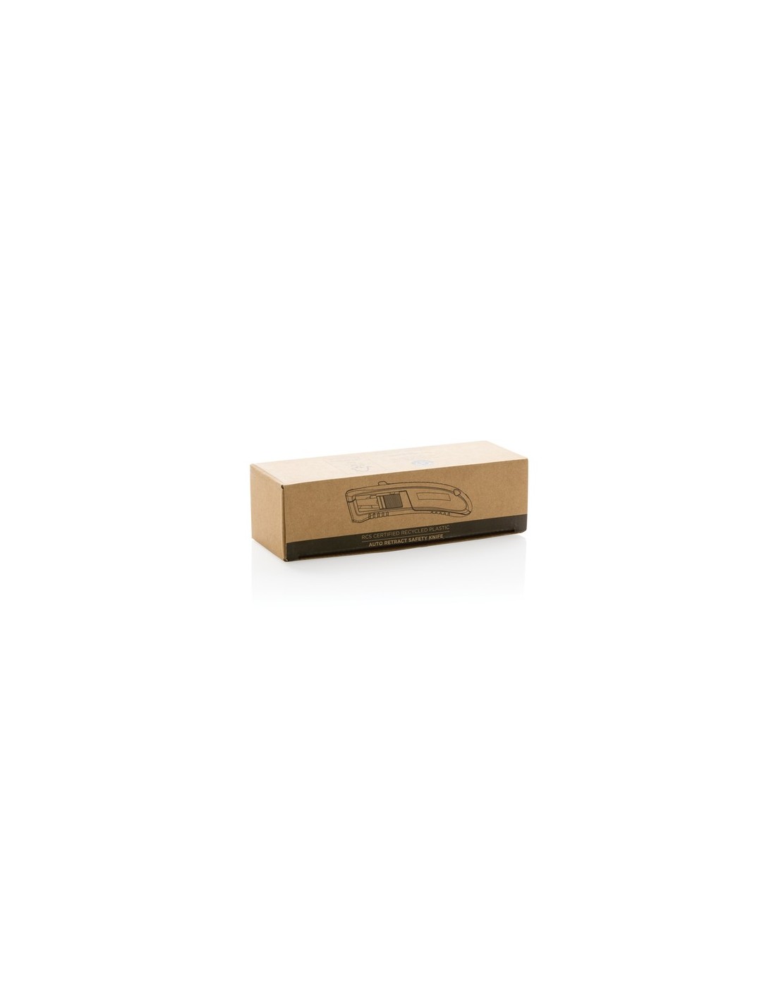 Cuchillo retráctil de plástico reciclado fabricado con ABS reciclado certificado RCS (Recycled Claim Standard), PC y hoja de acero inoxidable SK4. Contenido reciclado total: 93% basado en el peso total del artículo. La certificación RCS garantiza una cadena de suministro completamente certificada de los materiales reciclados. Fácil de usar tanto con la mano izquierda como con la derecha. Se retraerá automáticamente después de su uso para mayor seguridad. Presentado en caja kraft mixto FSC®. Material : ABS reciclado, Acero inoxidable Recycled Content Percent : 93,5 Conforme directiva Cadmio 91/338/EC, Conforme contenido de plomo U.S, Conforme PAHS content in Reach & ZEK 01-4-08, Conforme directiva Phtalate content, Libre de parafinas cloradas de cadena corta y media. Packaging : Caja de regalo All print codes : Pad Print - Print code default : Tampografía - parte frontal del artículo - 30 x 10 mm - max color : 5 Social Audits : BSCI Total CO2 emissions : 0,16.